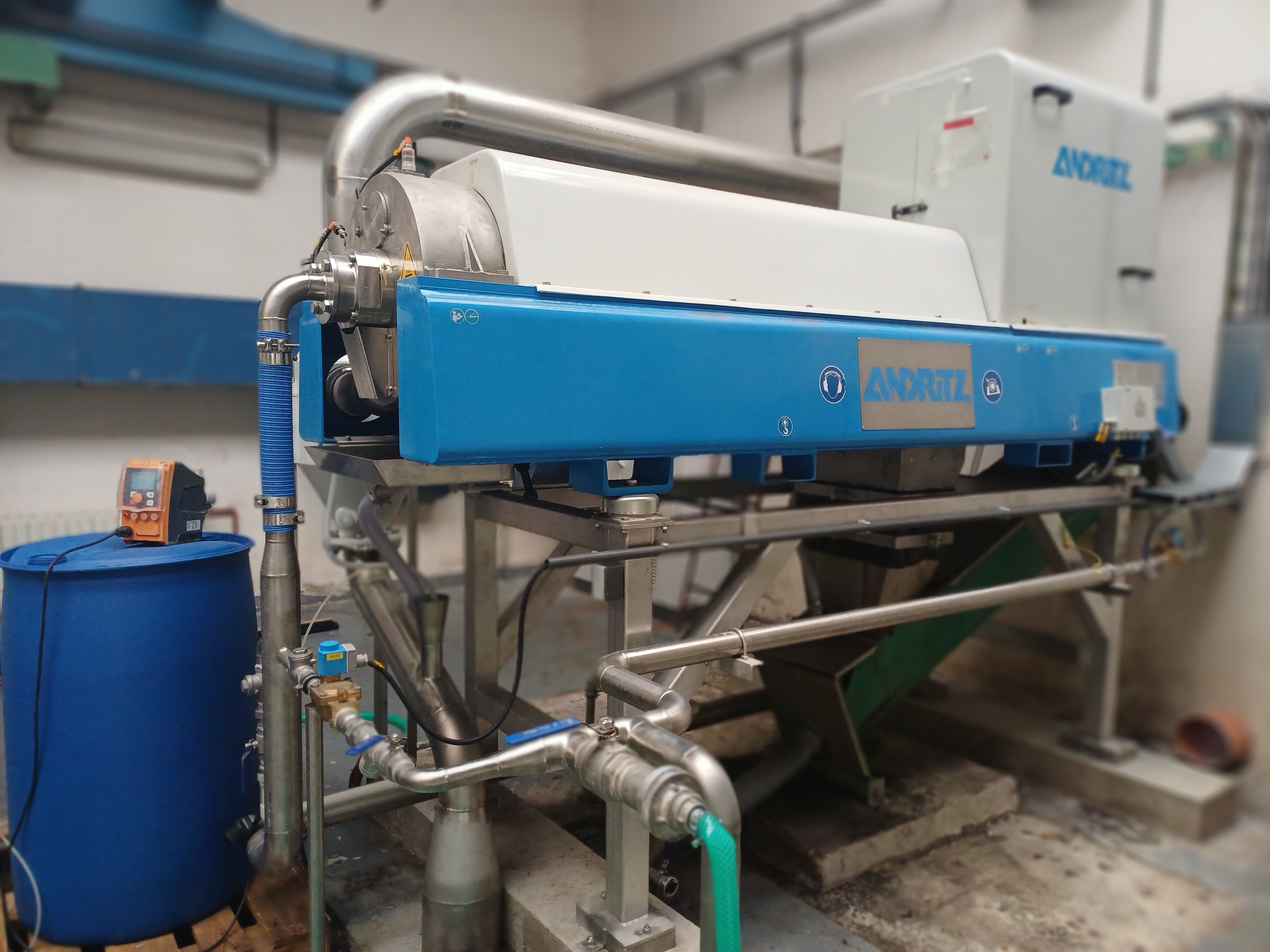Rekonstrukce se netýkala pouze samotné odstředivky, ale také souvisejících strojních částí. Cílem bylo obnovit celou technologii kalové koncovky tak, aby byla spolehlivá, úsporná a připravená na dlouhodobý provoz.